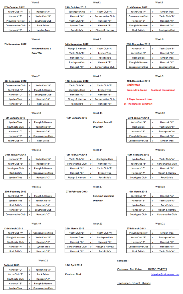 Mumbles Pool League Fixtures 2012/13
